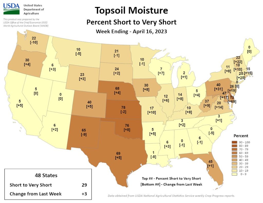 This Week’s Topsoil Moisture % Short/Very Short (S/VS) by @usda_oce