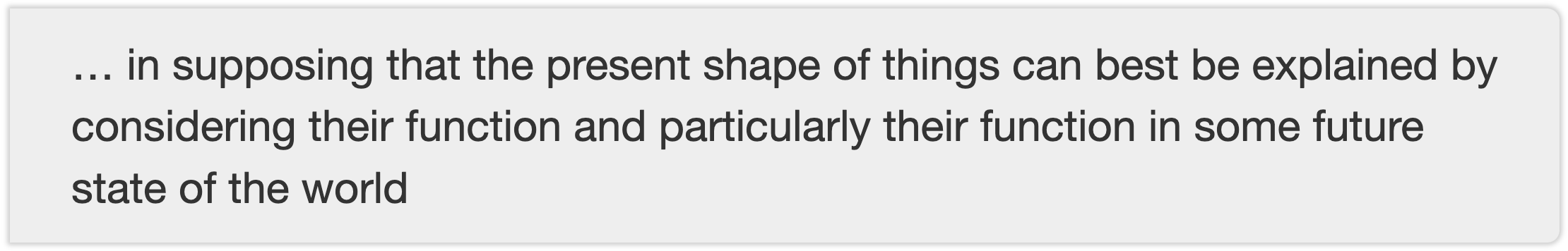 David contrasts a โteleologicalโ with a โgenealogicalโ mode of thinking about these things.