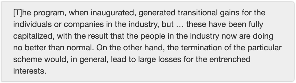 In a 1975 paper, Gorden Tullock defined a thing he called โthe transitional gains trapโ that I think sheds light on whatโs going on here.