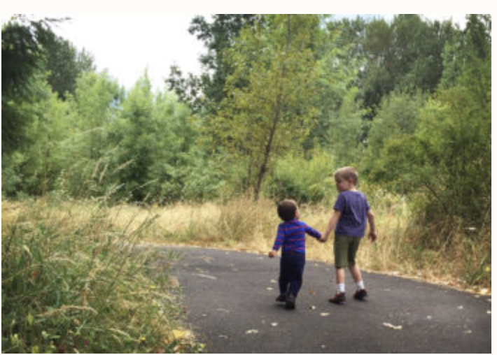 Crossing the railroad tracks I saw two trains, sitting, and pulled over waiting to watch them roll past me. I love watching giant trains roll past me when Iโm little and on two wheels.