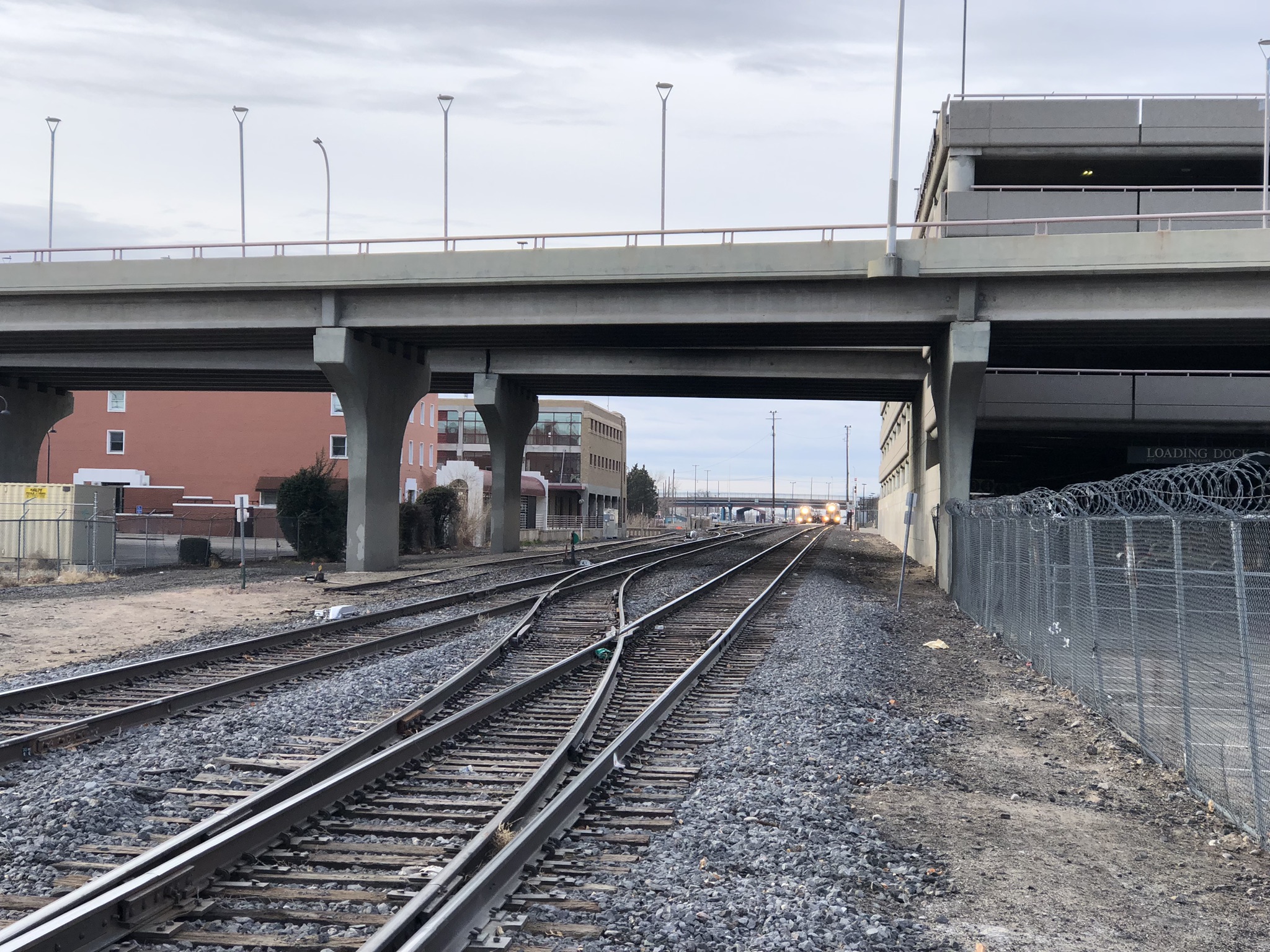 The Atchison, Topeka, & Santa Fe Railway blasted through New Mexico in the 1880s on its way to California and wealth creation. It didnโt much care about New Mexico, or Albuquerque, or this particular spot on the landscape where I took the above picture, other than the fact that we were between their โPoint Aโ and โPoint Bโ. Thatโs the accident of history. In retrospect there were probably better routes, but the AT&SF was in a hurry. But given that they were headed down our way, this particular spot โ on slightly higher ground at the edge of the valley floor โ made geographic sense. The downtown was built there because it was a swamp and the land was cheap.
