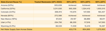 Recycled water volume created for each state at targeted reuse percentage UCLA